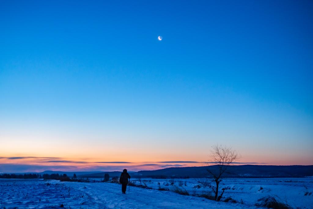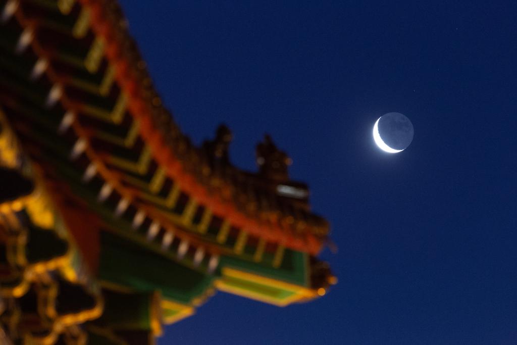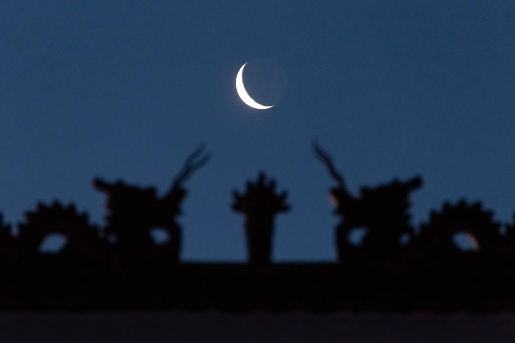 12月16日在黑龙江省黑河市拍摄的月亮。新华社发(钱泊羽摄)