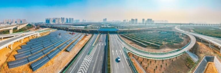 12月18日,在该项目帽耳刘枢纽互通式立交现场,耀眼的阳光下,大面积光伏板熠熠发光,成为高速公路上一道独特的风景线——这是光伏发电技术在该高速项目的创新应用。