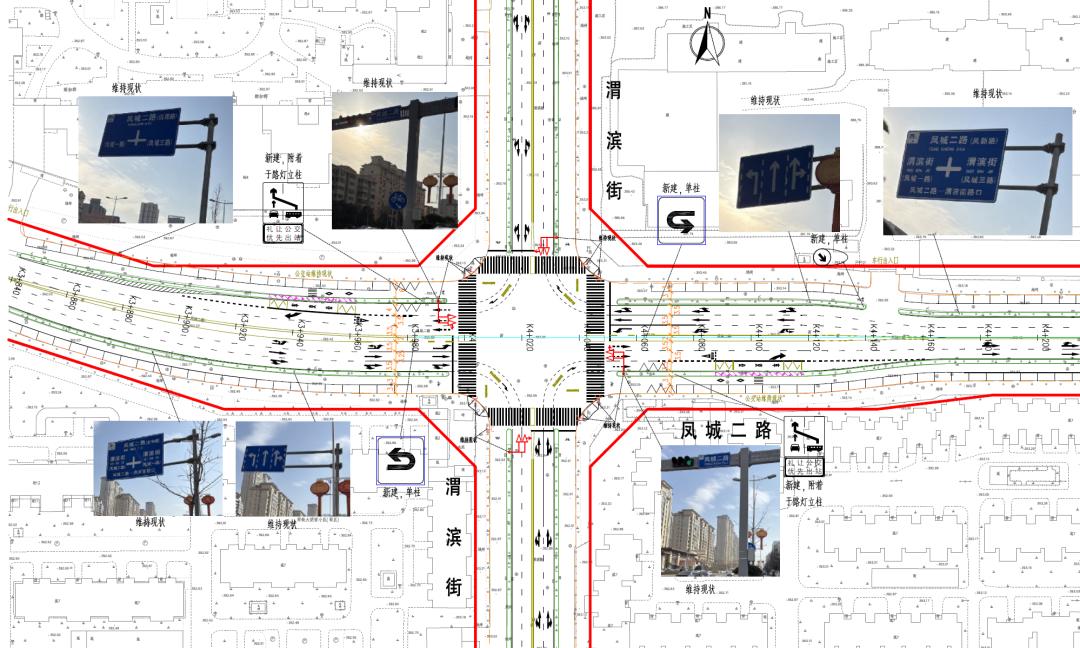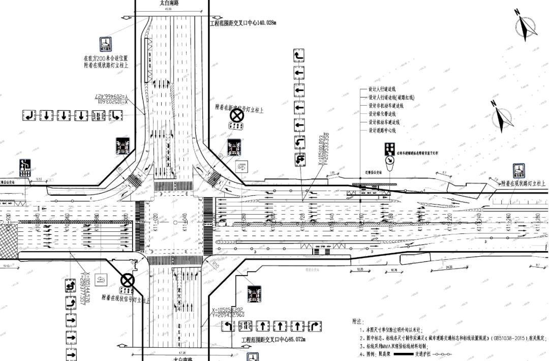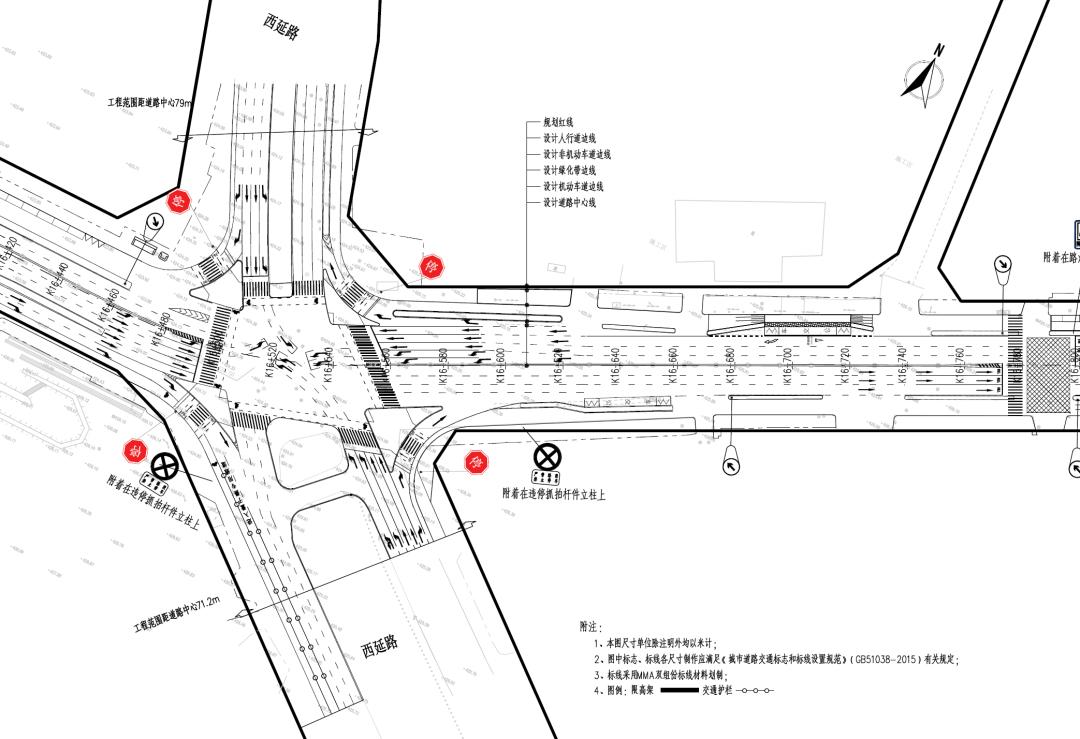 改造方案:实施南北向左转逆置交通组织方式;明确非机动车通行路权,完善相关交通标志标线。