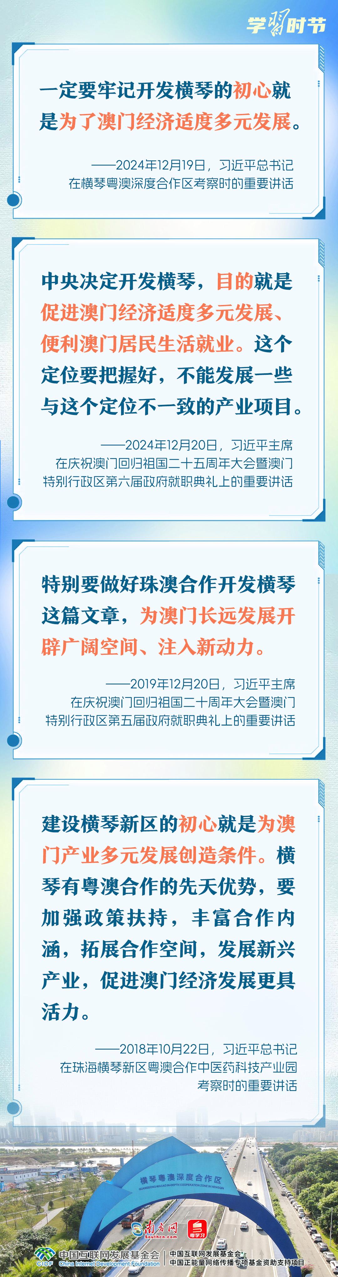 2024年12月19日,习近平总书记考察横琴粤澳深度合作区,他指出:“开发横琴的初心就是为了澳门经济适度多元发展”。党的十八大以来,总书记多次来到横琴,提及这个“初心”。