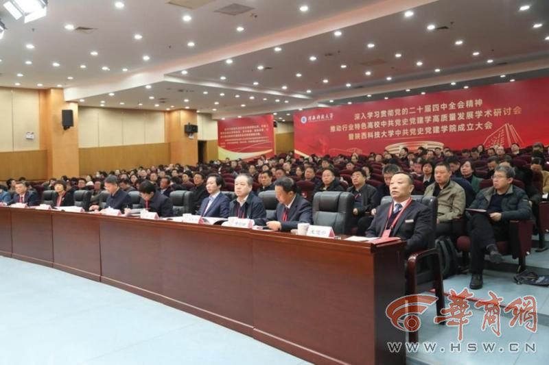 12月20日,陕西科技大学举办“深入学习贯彻党的二十届四中全会精神 推动行业特色高校中共党史党建学高质量发展”学术研讨会暨陕西科技大学中共党史党建学院成立大会。陕西省委宣传部常务副部长、省委网信办主任柯昌万,陕西省委党史研究室主任刘小平,国务院马克思主义理论学科评议组成员、国务院中共党史党建学科评议组成员、中国中共党史学会副会长、中国人民大学中共党史党建学院院长杨凤城教授,陕西省委党校(陕西行政学院)副校长吴永教授,陕西省委党校(陕西行政学院)校务委员曹延莉教授,中国轻工业职工思想政治工作研究会理事长宫滨,陕西科技大学党委书记樊建武教授,党委副书记、校长黄剑锋教授,党委委员、副校长马力以及来自40余所高校及研究机构的专家学者参会。大会由陕西科技大学党委副书记王道安主持。