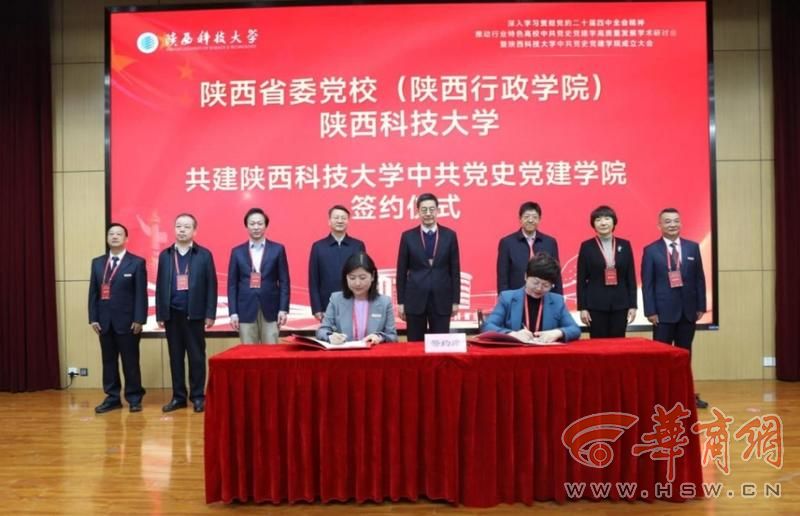 开幕式上,黄剑锋宣读《中共陕西科技大学委员会关于成立陕西科技大学中共党史党建学院的通知》。杨凤城与黄剑锋共同为中共党史党建学院揭牌。聘任仪式上,黄剑锋宣读聘任决定,为杨凤城颁发陕西科技大学中共党史党建学学术委员会主任聘书。签约仪式环节,曹延莉与马力分别代表陕西省委党校(陕西省行政学院)、陕西科技大学签订共建框架协议。