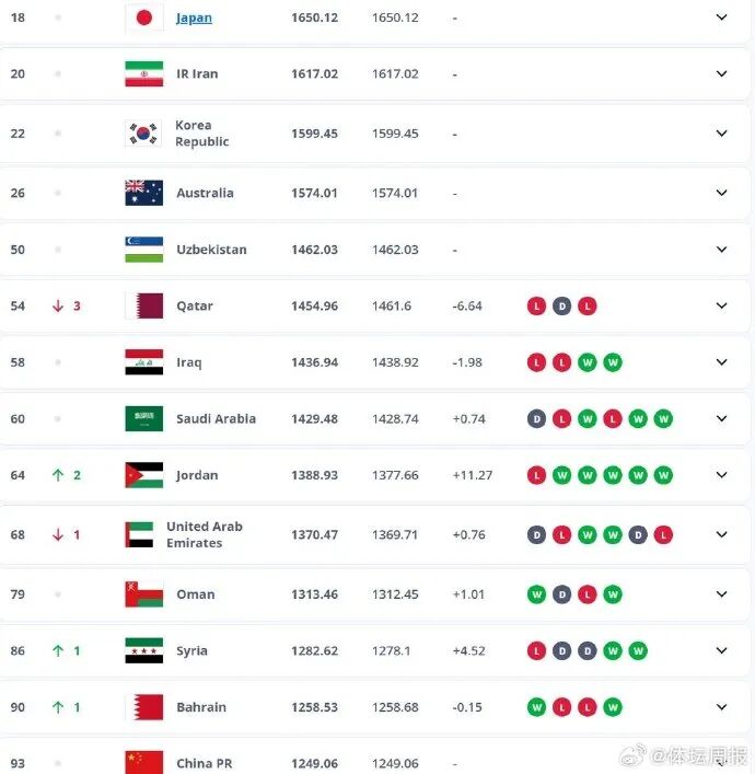 12月22日消息,国际足联公布2025年年终国家队排名,中国男足位列世界第93位、亚洲第14位,这一排名创下球队自2014年以来的年终排名新低。