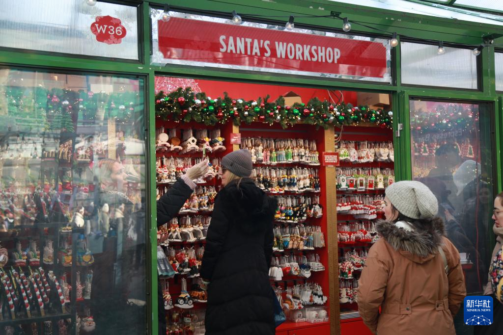 12月22日,顾客在美国纽约曼哈顿中城布莱恩特公园的“圣诞工坊”礼品店内选购商品。新华社记者 刘亚南 摄