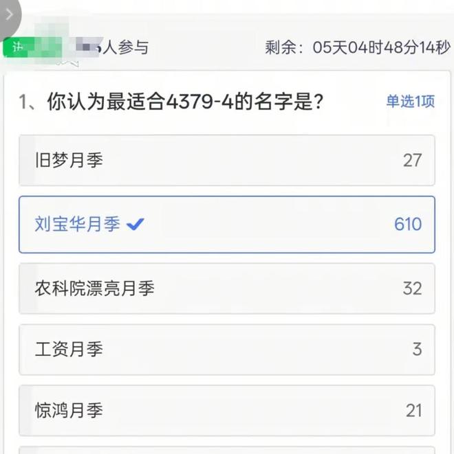 近日,云南省农科院开启了一项为新品种月季4379-4征名的活动,山东的康先生(网名:有之)发了个略带调侃的建议:“刘宝华月季,因为我二舅叫刘宝华。”没想到这条评论有超过1.5万名网友点赞,此后的投票中“刘宝华月季”真的被投到了“榜一”。随后,云南省农科院采纳了康先生的建议,给这种月季起名为“宝华月季”,并进行了网上申报。