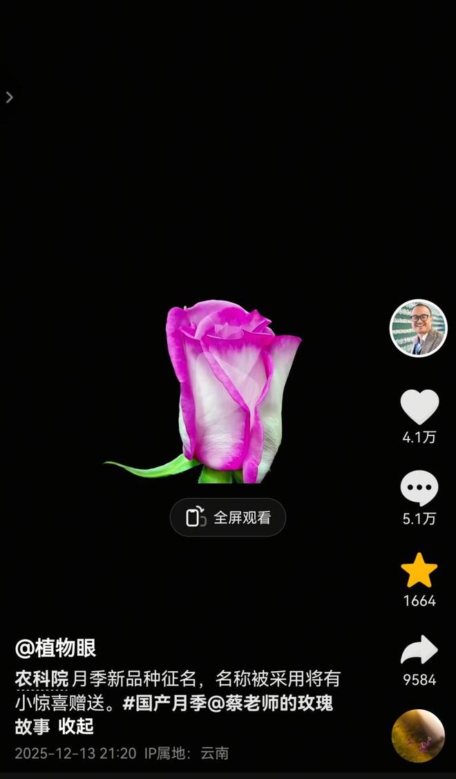 云南省农科院的新品种月季征名活动有5万多名网友留言 视频截图