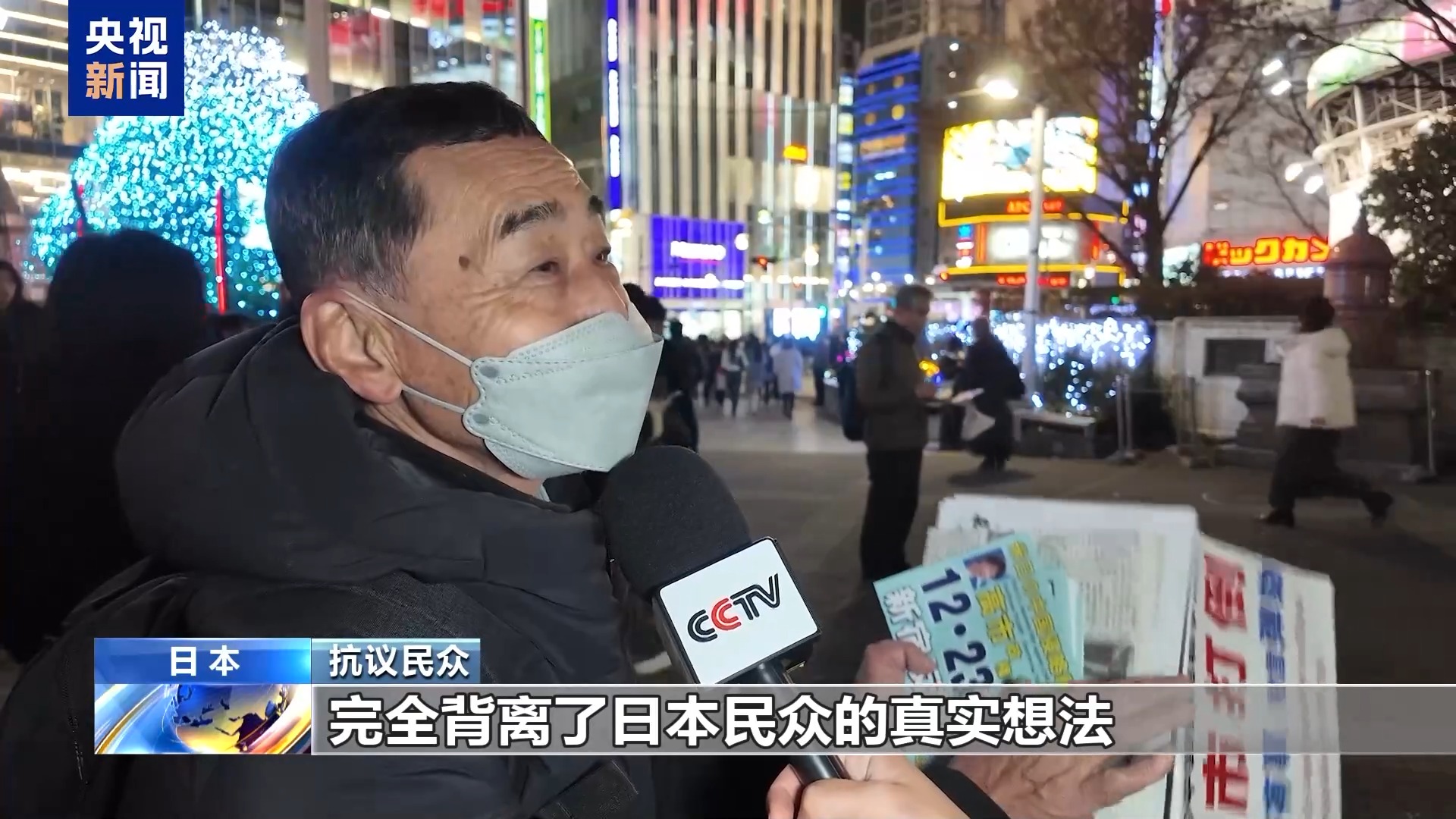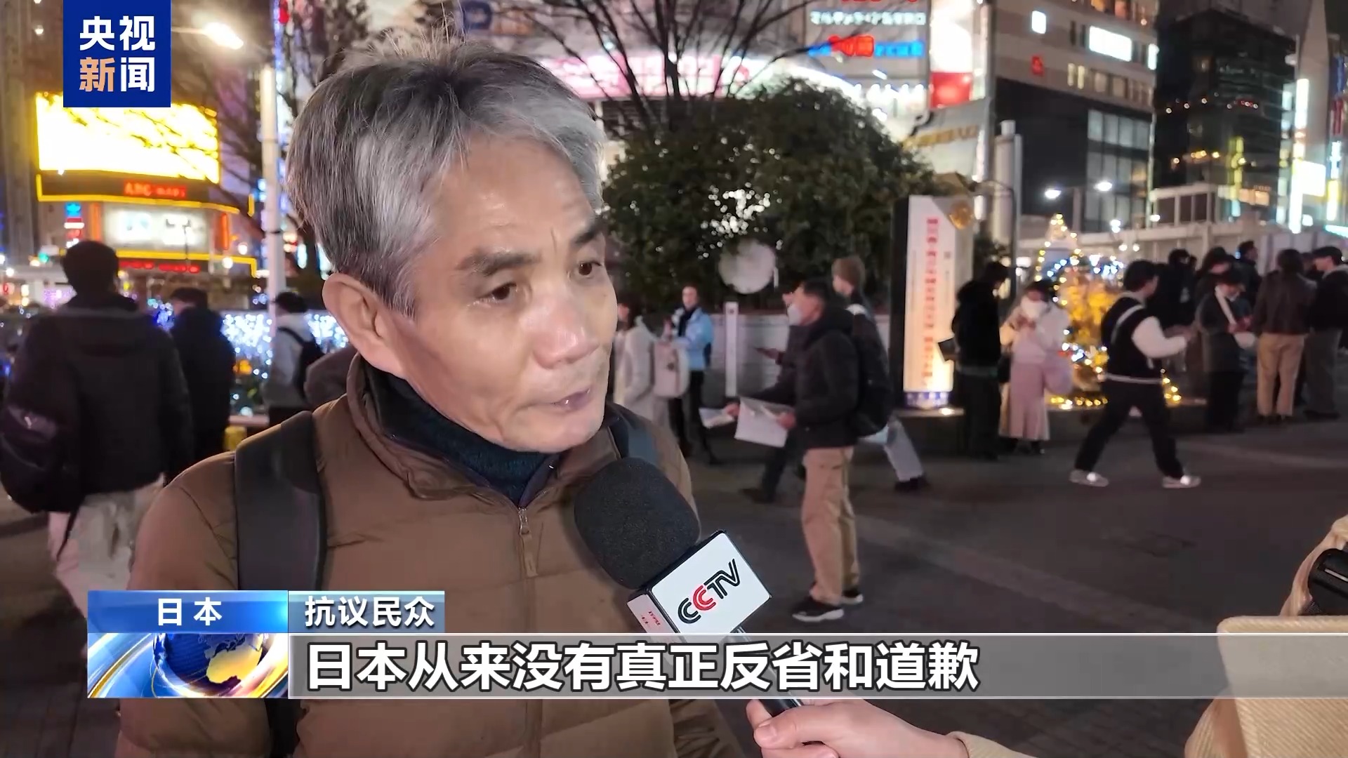 总台记者 刘耀鸿:当地时间23日晚,日本民众再次走上街头举行抗议活动,他们要求高市早苗停止煽动战争,并立即撤回涉台错误言论。