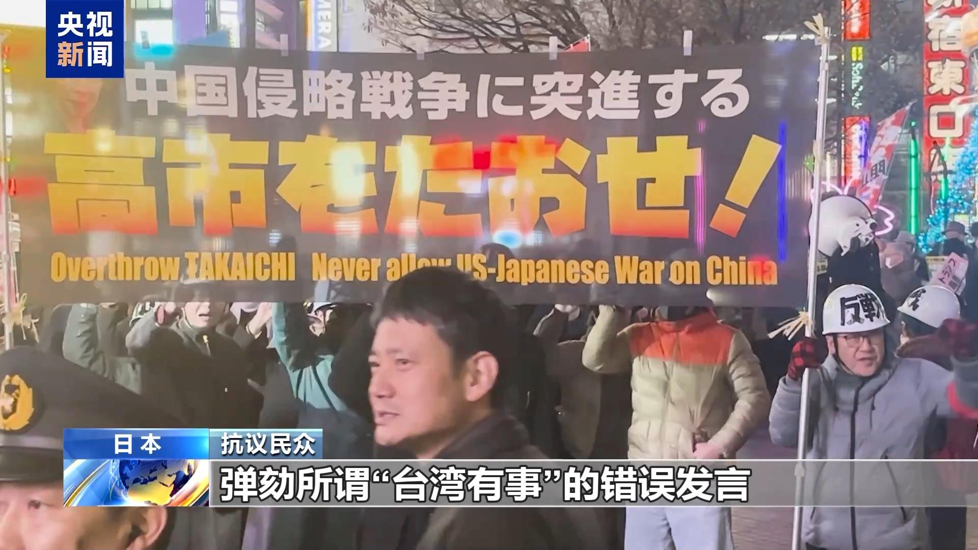 总台记者 刘耀鸿:当地时间23日晚,日本民众再次走上街头举行抗议活动,他们要求高市早苗停止煽动战争,并立即撤回涉台错误言论。