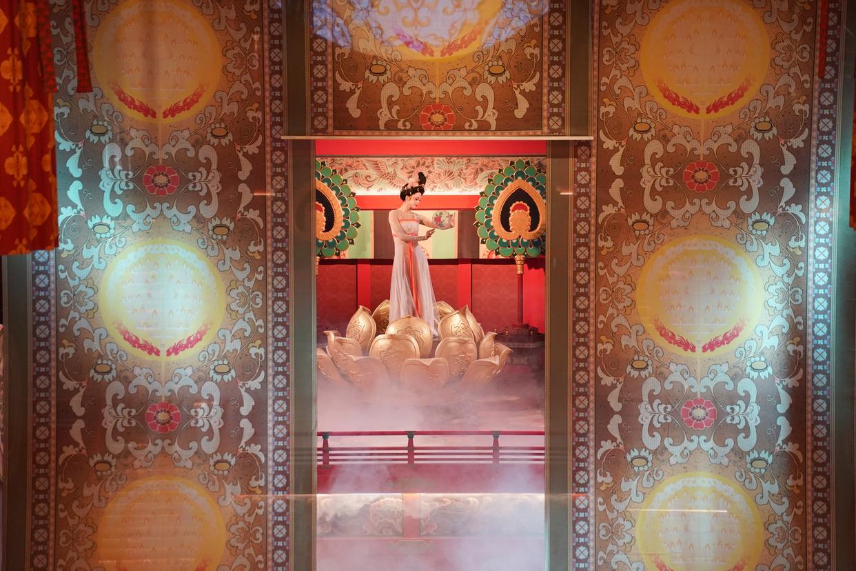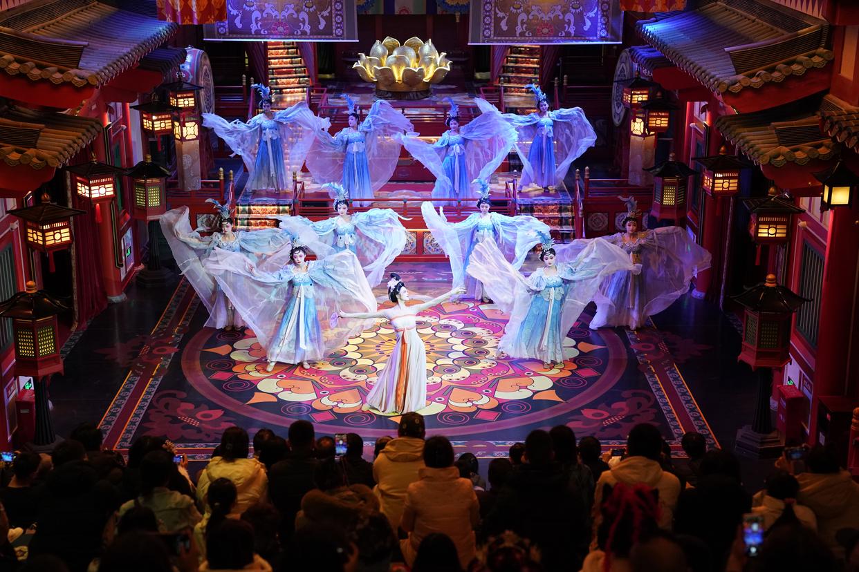 12月23日,演员在街区内表演大唐乐舞《霓裳羽衣舞》。新华社记者 邵瑞 摄
