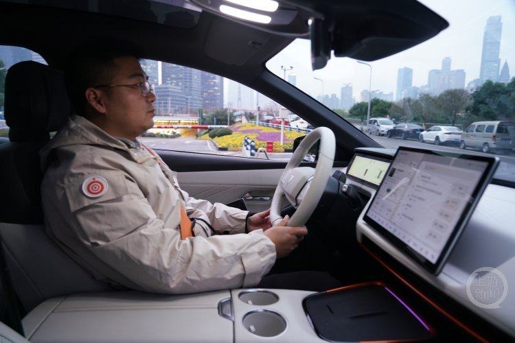 面对雨雾天气叠加拥堵,这辆车在遭遇邻车加塞、前车突然刹停等状况时,车机系统都像“老司机”一样,灵活有效应对。透过车内屏幕,车辆周边的车流等实时场景也一目了然。整个乘坐过程,没有急刹、颠簸等意外状况。驾驶员不需要操作,只需做好准备,在特殊情况下接管车辆就可以了。