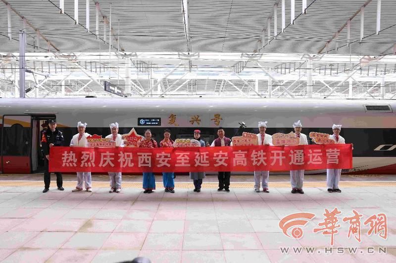 在延安站,伴随着陕北老乡安塞腰鼓铿锵的鼓点、飞扬的红绸,列车平稳加速、缓缓驶离站台。窗外陕北高原的冬景如画卷般展开,车厢内,暖气驱散了寒意,首发列车中的乘客们都怀揣着一颗颗雀跃的心。初次体验的惊喜、旧地重游的感慨、对未来的憧憬,在此刻混合成一种特殊的氛围。素不相识的人们,因这条崭新的钢铁动脉而有了共同话题,交谈声与笑声在车厢里回荡。