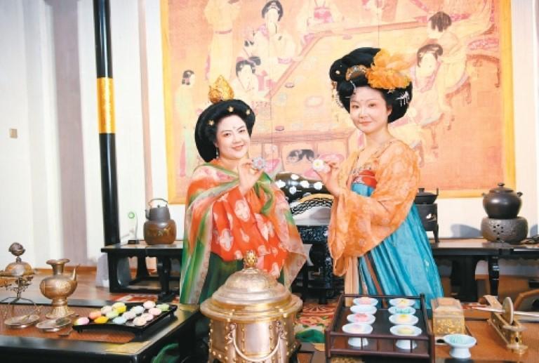 掌心轻拢豆沙团,指尖翻飞间,一朵栩栩如生的“盛唐莲花”便跃然眼前。在西安,“80后”李欢曾多年深耕烘焙行业,一次机缘巧合下与唐果子结缘。2020年,她携手四位志同道合的传统文化爱好者组建团队,以一枚枚精巧的唐果子和醇厚的唐茶为载体,让千年前的风雅滋味,化作触手可及的文化信物。