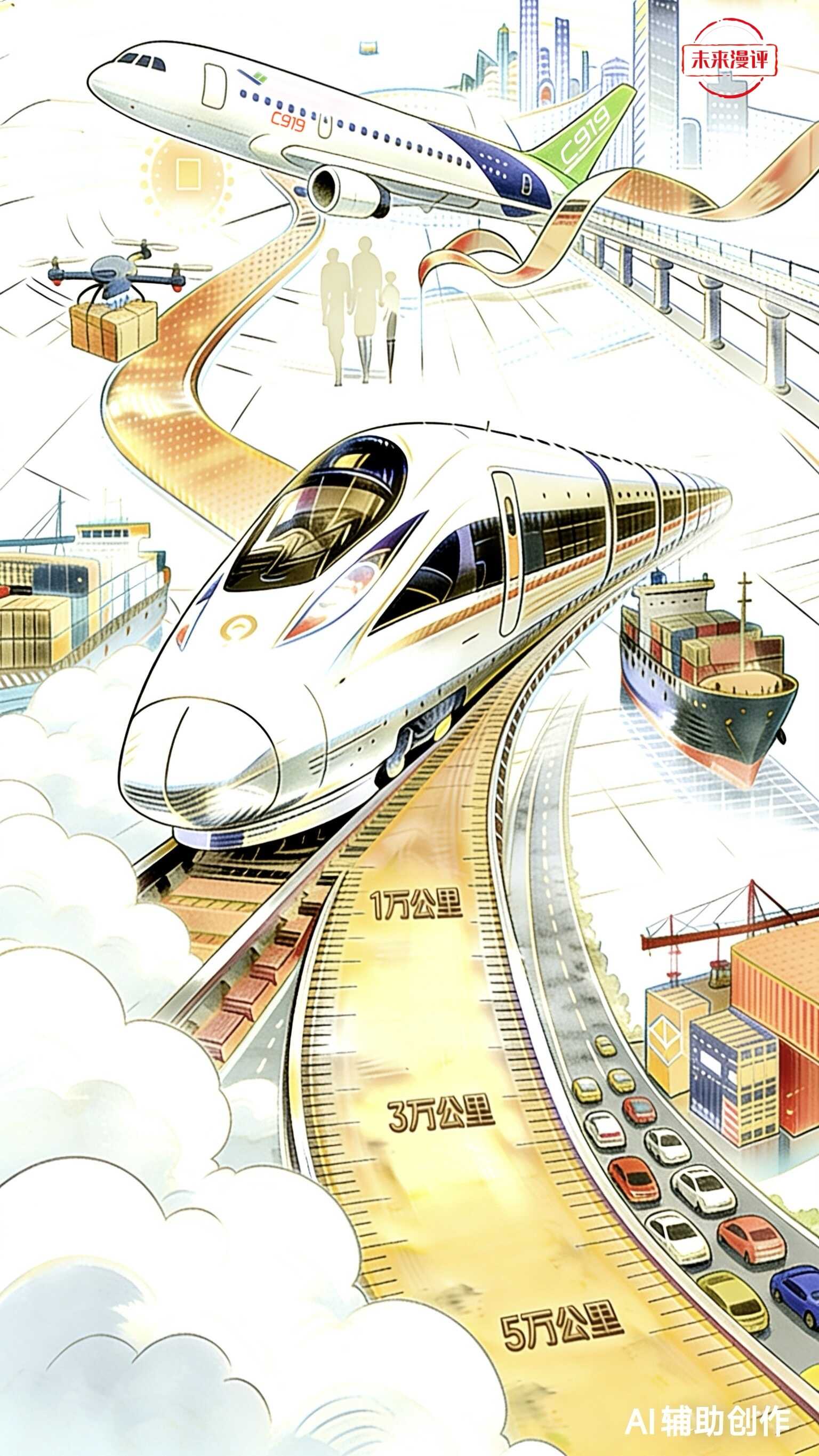 面向“十五五”,期待安全、便捷、高效、绿色、经济、包容、韧性的可持续交通体系加快建设,为经济社会高质量发展、实现“人享其行、物畅其流”美好愿景增添更多力量。(文字/AI漫画:泰轩萍)