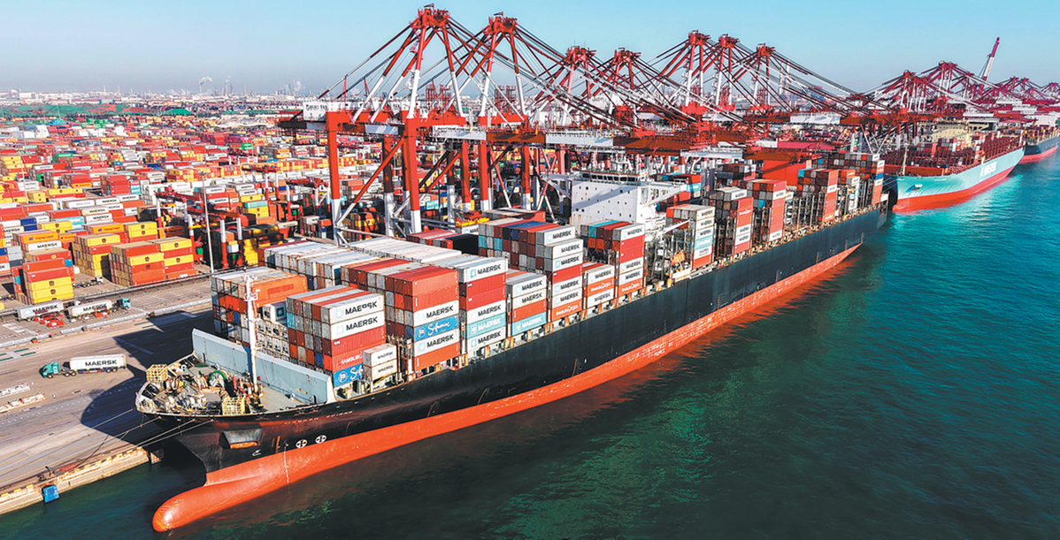 Container vessels are seen docked at Qianwan Container Terminal in Qingdao, Shandong province, on Dec 8. YU FANGPING/FOR CHINA DAILY