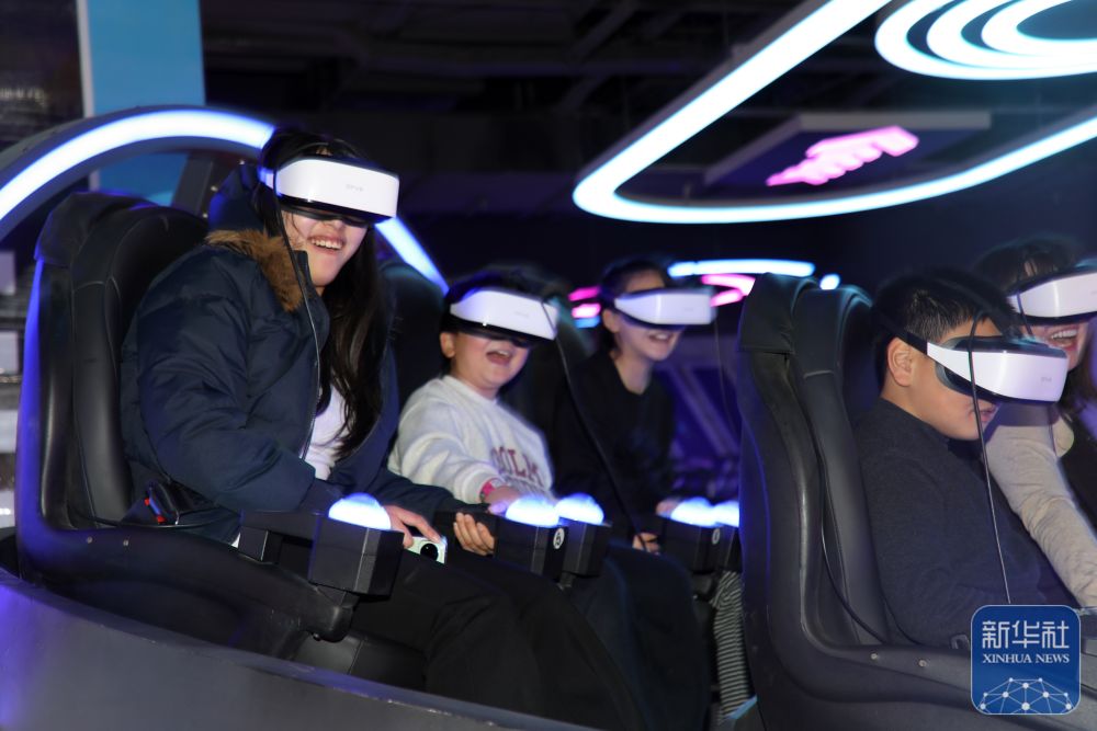 ↑ 1月2日,在山东省滨州市博兴县一家大型购物中心的游乐场,人们在消费体验游乐项目。新华社发(陈彬摄)
