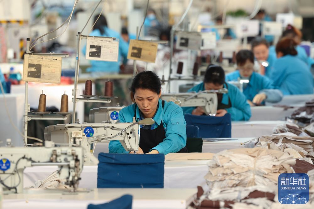 ↑ 1月2日,在位于河北省石家庄市井陉县的一家服装企业,工人在车间赶制订单。新华社发(梁子栋摄)