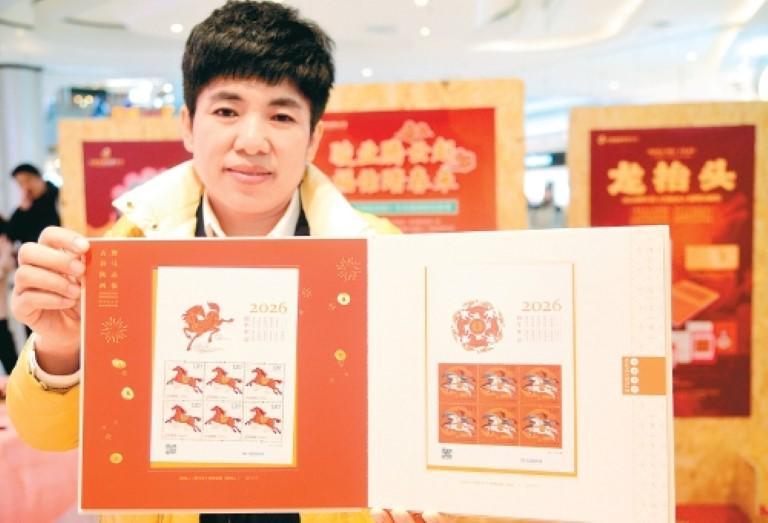 第四轮生肖马邮票——《丙午年》特种邮票以兼具颜值与文化底蕴的设计,成功“圈粉”各年龄段群体。“红马踏祥云的设计太有年味了!”“00后”青年刘宸宇手持邮票端详片刻后笑着说,“既藏着中式美学的韵味,又透着蓬勃的朝气,正好买回去送给亲友,祝愿大家马年顺遂、大展宏图。”
