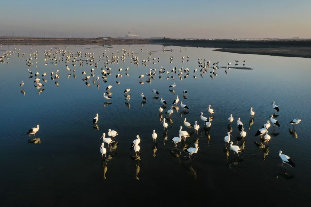 2025年的候鸟迁徙季,天津七里海保护区提前采取保护措施,降低了湿地的水位,投放鱼苗等食物,迎接东方白鹳的到来。