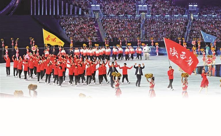 陕西体育代表团在十五运会开幕式上入场。