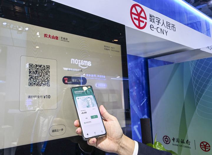 2022年12月12日,工作人员在首届全球数字贸易博览会上展示数字人民币的应用场景。新华社记者 徐昱 摄