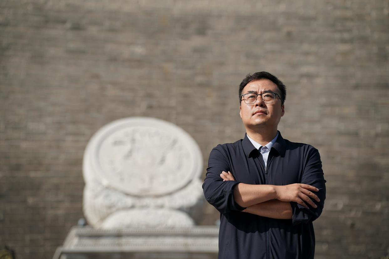赵彬在西安城墙永宁门内(2025年9月12日摄)。新华社记者邵瑞摄