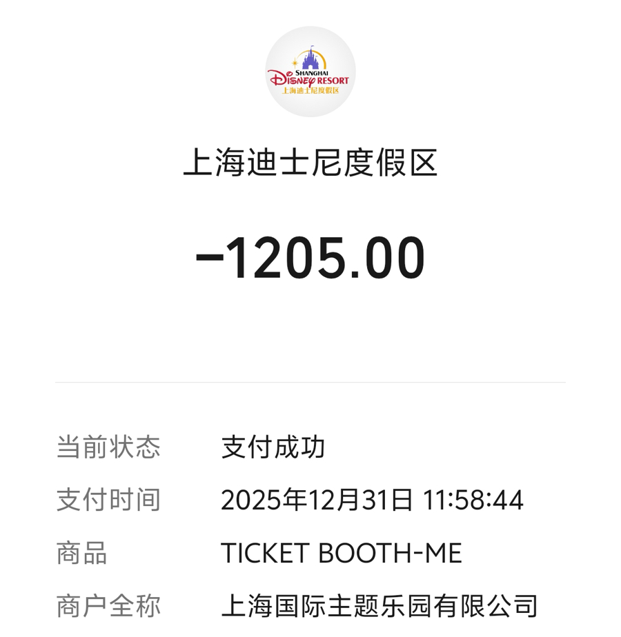 套餐产品无法用来购票后,他在迪士尼现场官方窗口支付1205元购票入场。