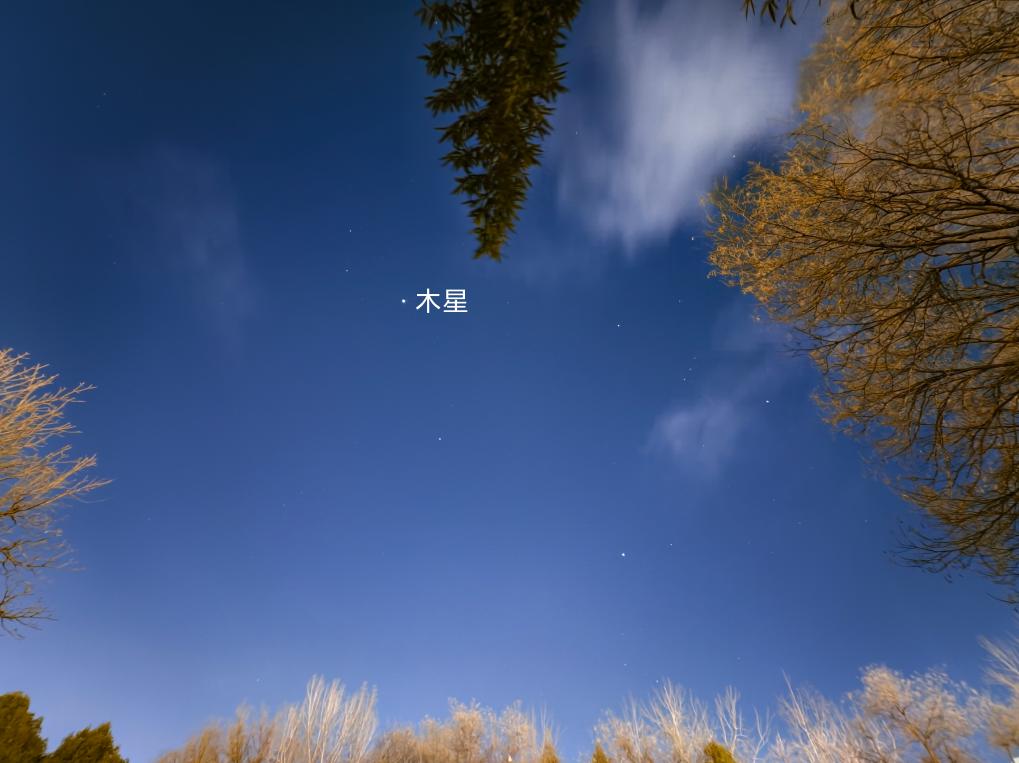 时序“三九”,在北京,虽然寒风凛冽,但也刮晴了天空。日落后,木星即从东偏北方向升起,灿若宝石,成为夜空中不容忽视的存在。