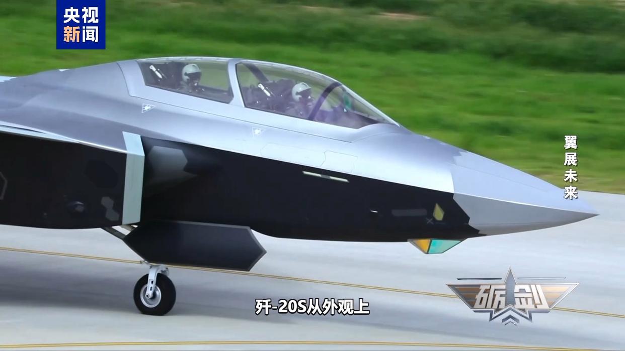 作为全球唯一一款双座隐身战斗机,歼-20S从外观上与歼-20相比加长了座舱,增加了一名飞行员。这不仅仅是简单的“1+1”,它带来的是空战规则的改变。