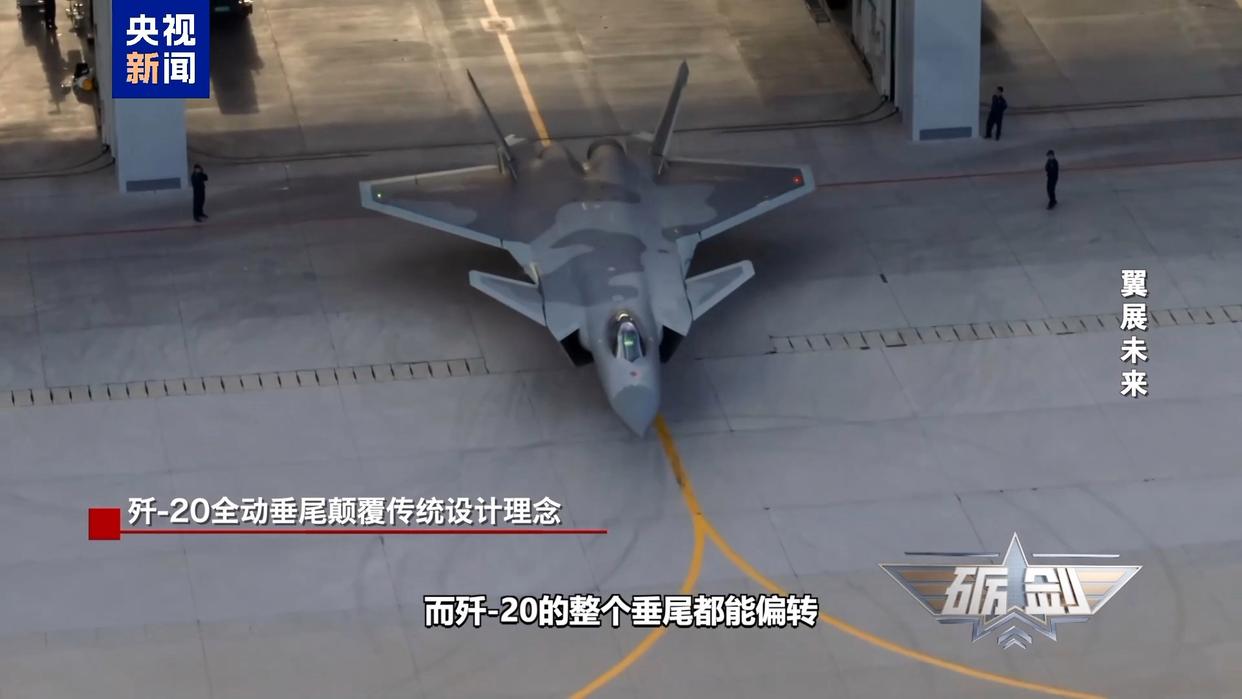 普通飞机的垂直尾翼,只有一小块方向舵能动,而歼-20的整个垂尾都能偏转,相当于把整块板都变成了舵,受力面积大幅增加。