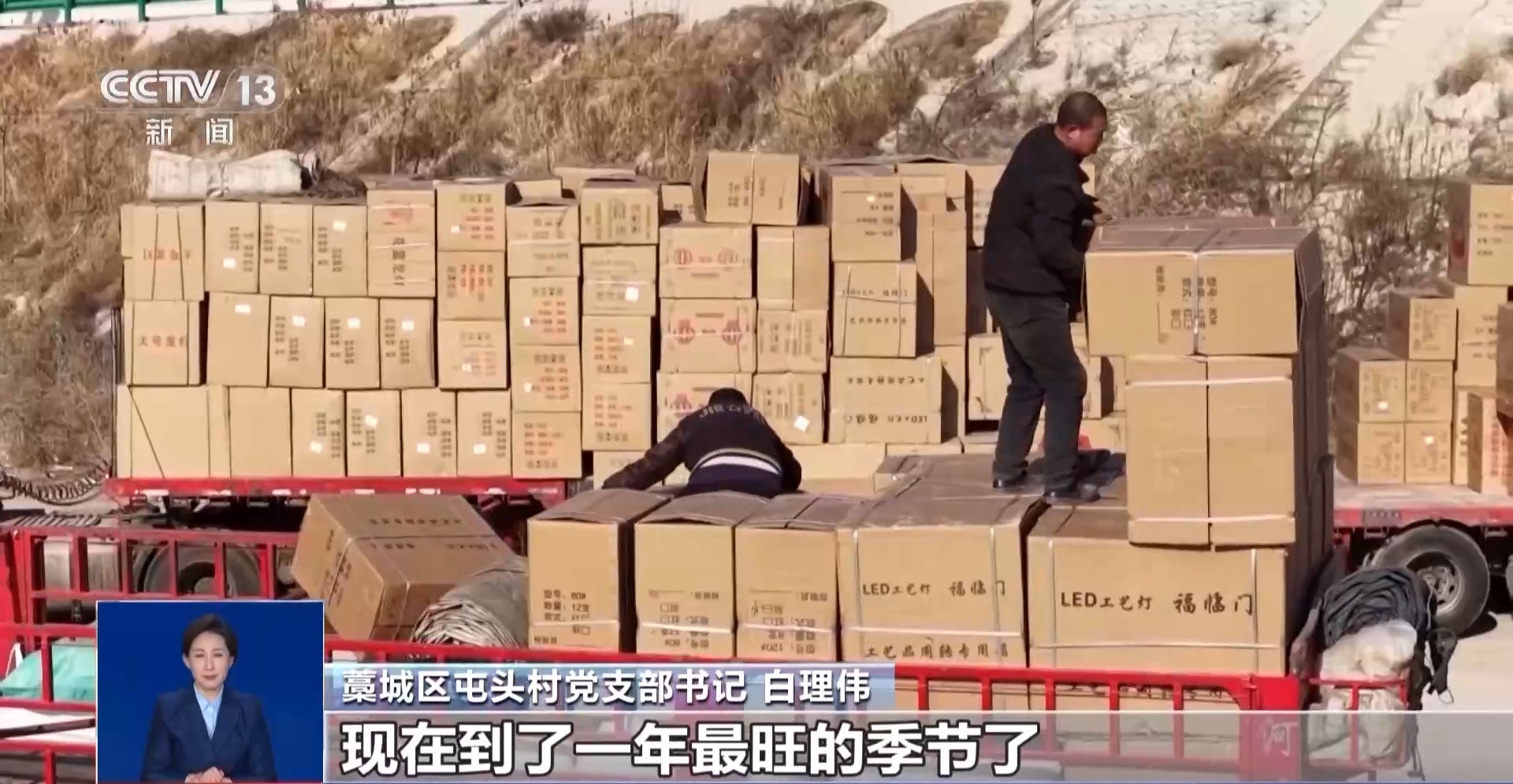 在河北石家庄藁城区屯头村,大大小小的宫灯厂一家挨着一家,前来进货的汽车进进出出,一片热闹繁忙。
