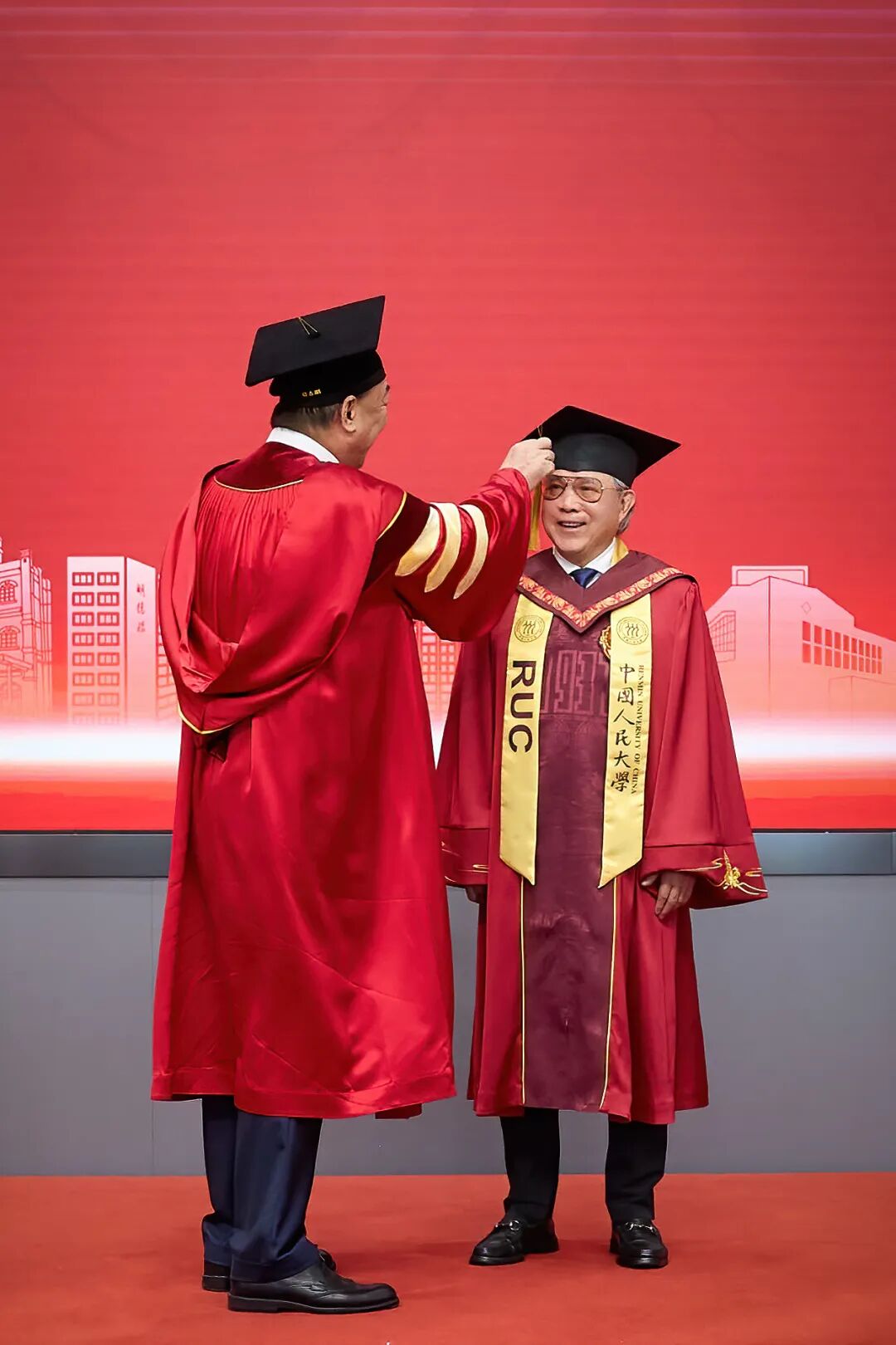中国人民大学党委书记张东刚为霍震霆先生拨穗