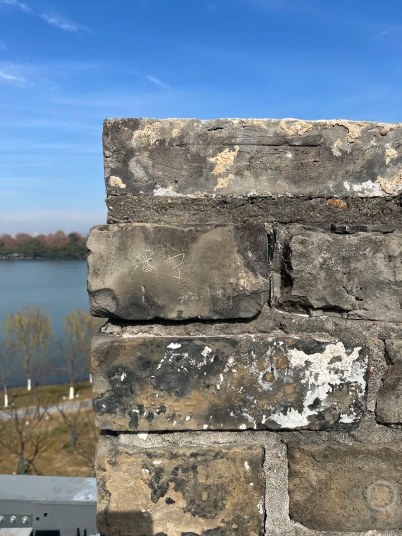 该市民还指出,刻划位置位于南京城墙解放门至玄武门段,面向湖面一侧,属于明城墙,“南京城墙存留的砖石虽然不少,刻得也不算深,但这种行为实在令人气愤。”