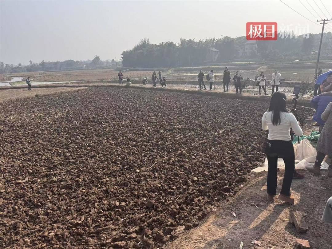 13日,刨猪宴已经结束,踩实的农田被旋耕机耕了一遍,黝黑的泥土被翻开,在冬日下散发着乡土的气息。这天仍陆续有网友慕名而来,但都失望而归。现场更多的是拿着手机直播的主播们,他们站在马路边或者田坎上,把镜头对着呆呆家的二层楼房,不停与评论区互动,有主播在现场表演跳舞和倒立,还有女主播现场表演一字马,引起围观者阵阵欢呼。
