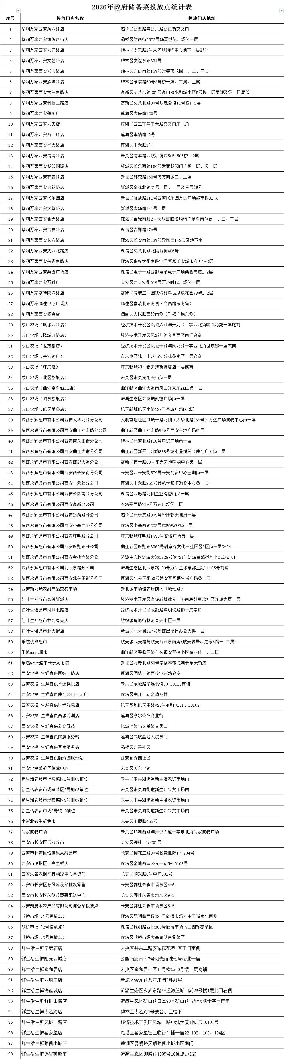 (一)各投放点悬挂“西安市政府储备菜投放点”横幅标识。