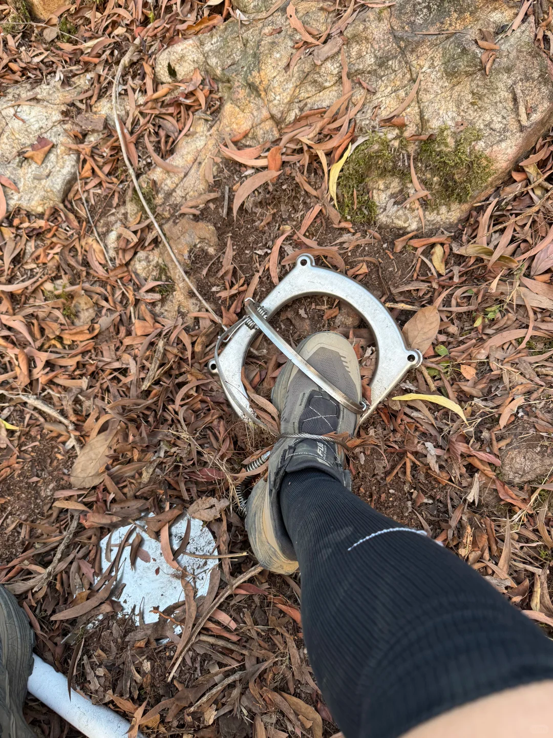 广州市民发帖称,自己在白云山景区徒步时被捕兽夹夹住。网络图