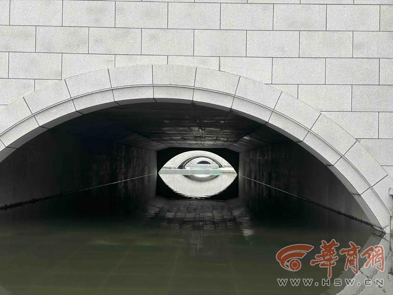 1月20日下午,华商报大风新闻记者在西安火车站南广场看到,原本广场上两处下沉广场已然变了模样,原本埋藏地下的暗涵被打通,西安城墙尚德门至尚勤门城墙下,护城河河水在此静静流淌。如今,西安人的城墙下,不仅有“西安人的火车”,还有一段真正意义上完整的护城河。