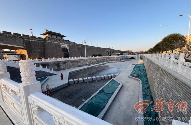 华商报大风新闻记者从西安水务集团获悉,西安市护城河及环城公园(西门-北门-东门)综合改造工程(二期)火车站段项目涵盖859米护城河改造及火车站南广场5.01万平方米环境整治提升。2025年1月项目建设启动,经过一年攻坚克难,工程于1月20日正式通水,意味着全长14.6公里的护城河真正实现全线贯通。
