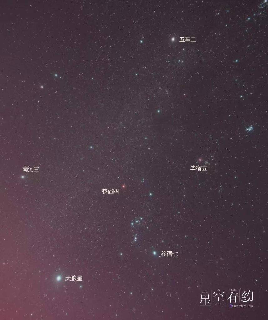而天狼星、南河三与参宿七、北河三、五车二、毕宿五构成的“冬季大钻石”则是冬季星空另一代表性图案。其中,五车二、参宿七全天恒星亮度排名分别为第六、第七,北河三、毕宿五均为一等星。
