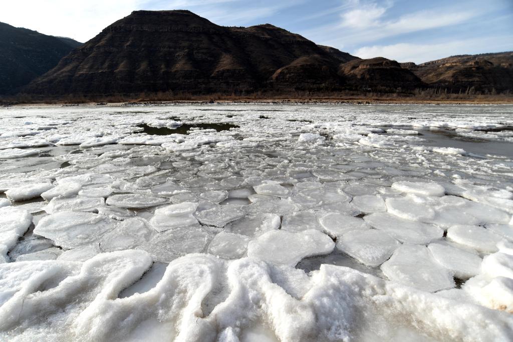 1月21日,黄河壶口瀑布下游大量流凌堆积凝结。(吕桂明 摄)