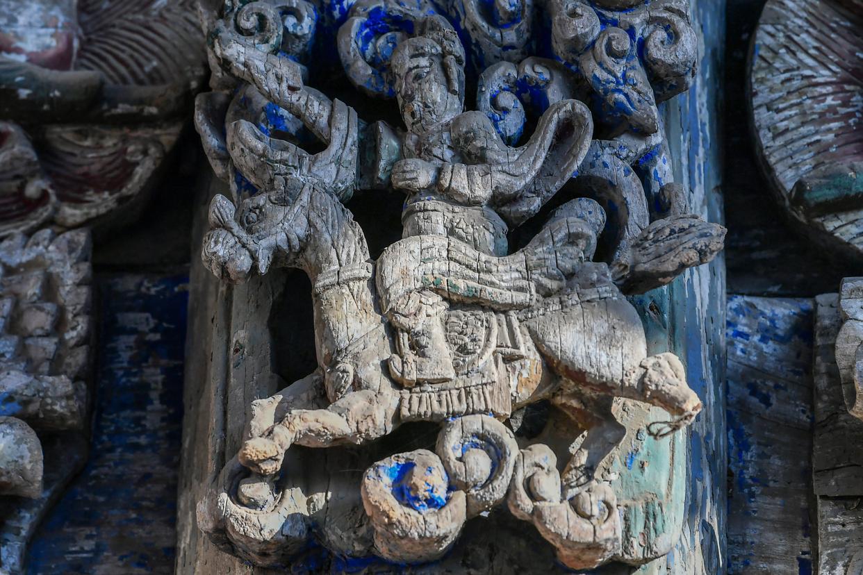 这是在山西省万荣县东岳庙拍摄的装饰构件。马与古人的权力观念深度绑定