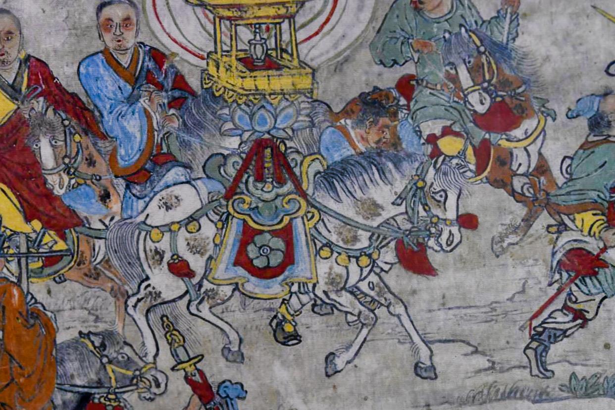 这是在山西省高平市仙翁庙拍摄的壁画中的马。