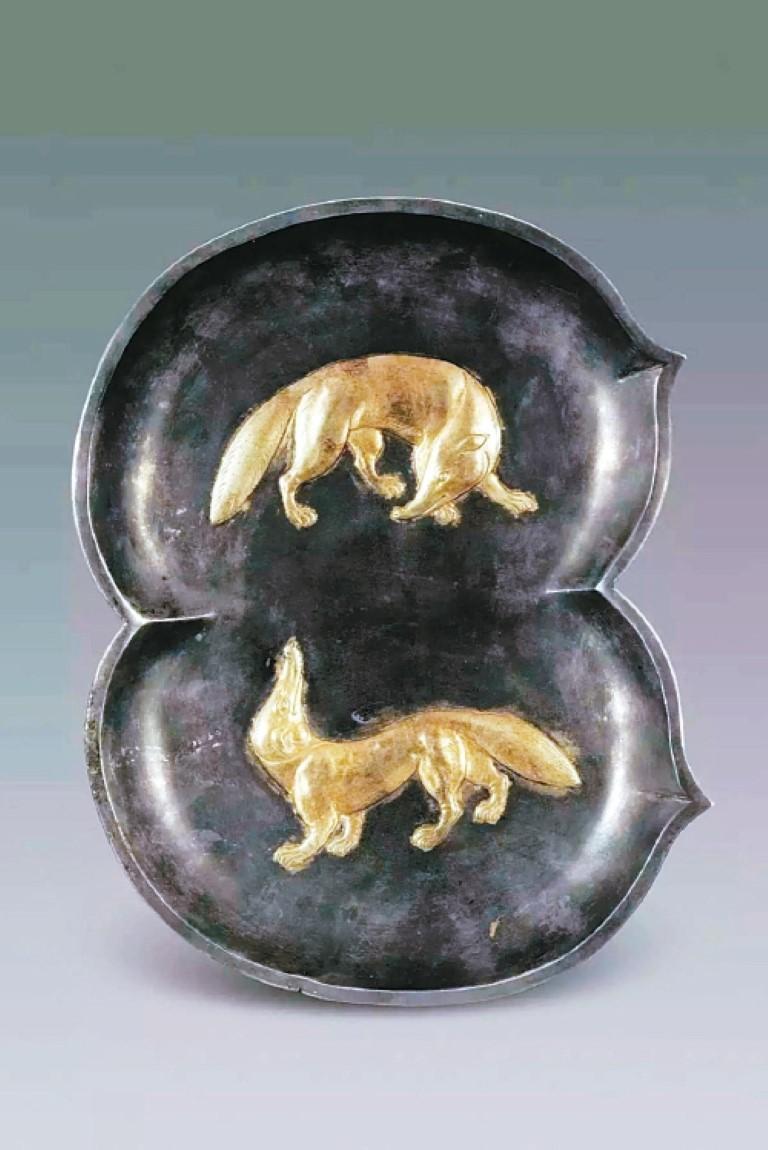 “这次选择的10件(组)文物是何家村窖藏里很有代表性的文物,比如鸳鸯莲瓣纹金碗。”王梓奕介绍,“它包含了捶揲、錾刻、抛光工艺,其中捶揲工艺是从西亚和中亚传过来的,这也是丝路文化交流的一个实物见证。”仔细观察还会发现,金碗的内壁墨书“九两三”的字样。王梓奕补充道,“唐代的一两是42克,九两三一共是390.6克,这件金碗实测的重量是391克,可以看出与上面墨书所写的重量非常接近,误差很小。”