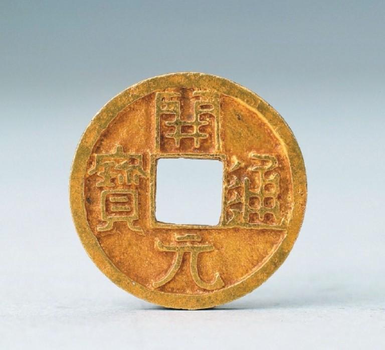 除了唐鸳鸯莲瓣纹金碗,此次还展出了何家村窖藏出土的“开元通宝”金钱。据悉,何家村窖藏共出土466枚钱币,其中有30枚“金开元”,出土时存放在“大粒光明砂”银盒之中,可见其珍贵程度。经对其中五枚“开元通宝”金钱的成分抽样检测表明,每枚金钱成色各异,含金量为81.6%——94.36%。据悉,唐朝时,金开元和银开元并不是用来购买物品的,主要是皇室贵族用来做游戏、压胜,或者是皇帝赏赐臣属时所用。
