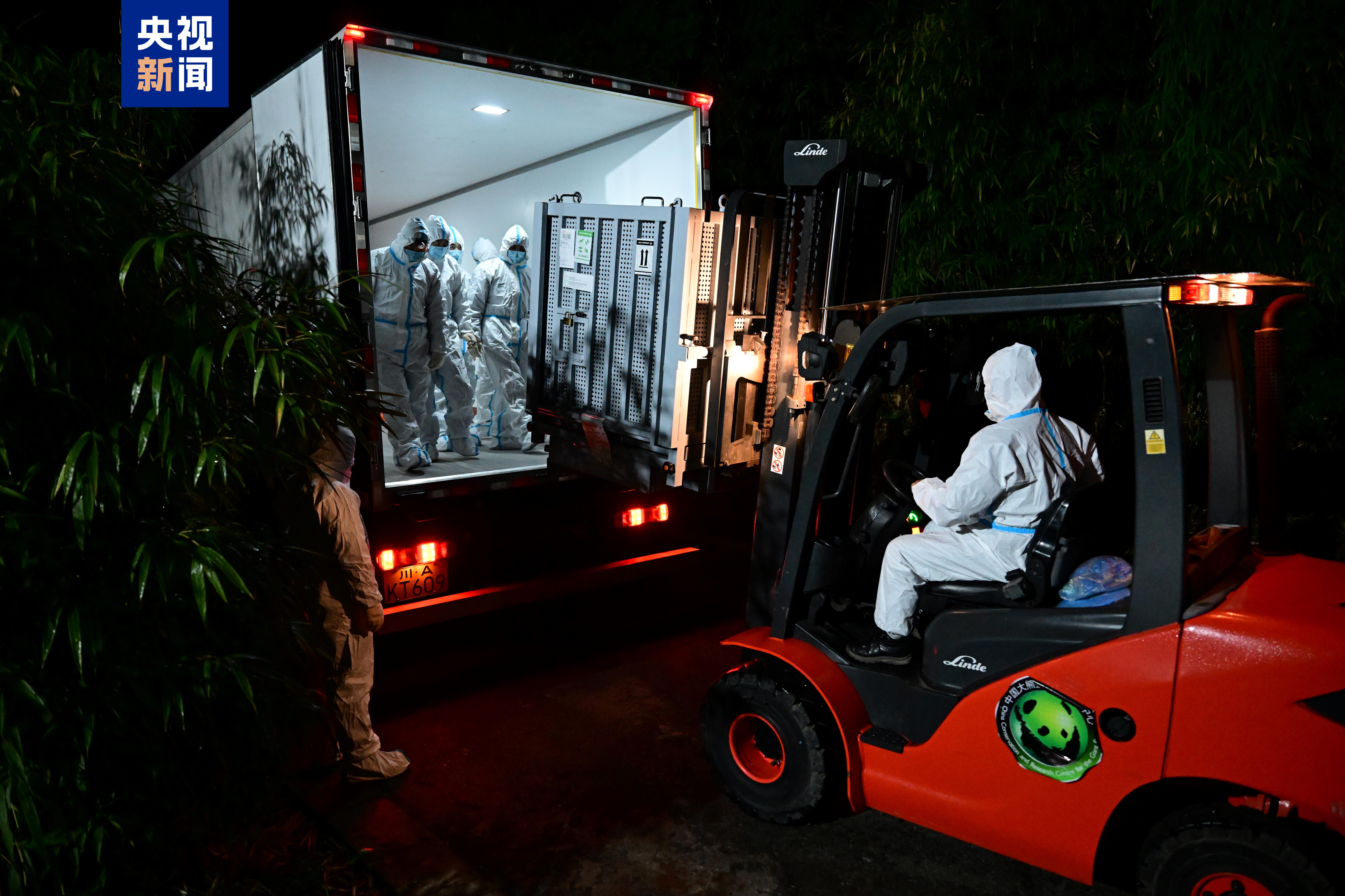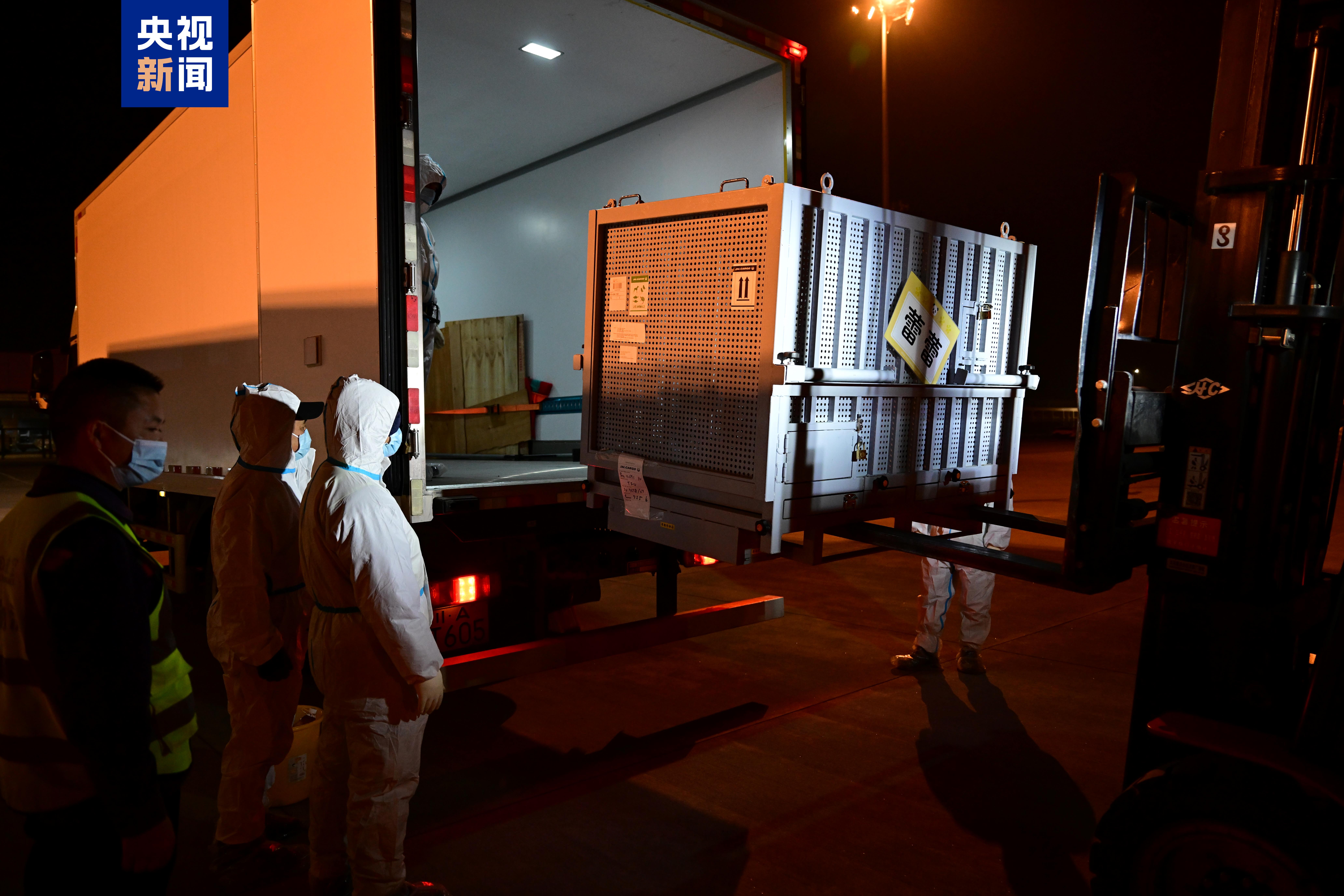 旅日大熊猫“晓晓”“蕾蕾”装运上车