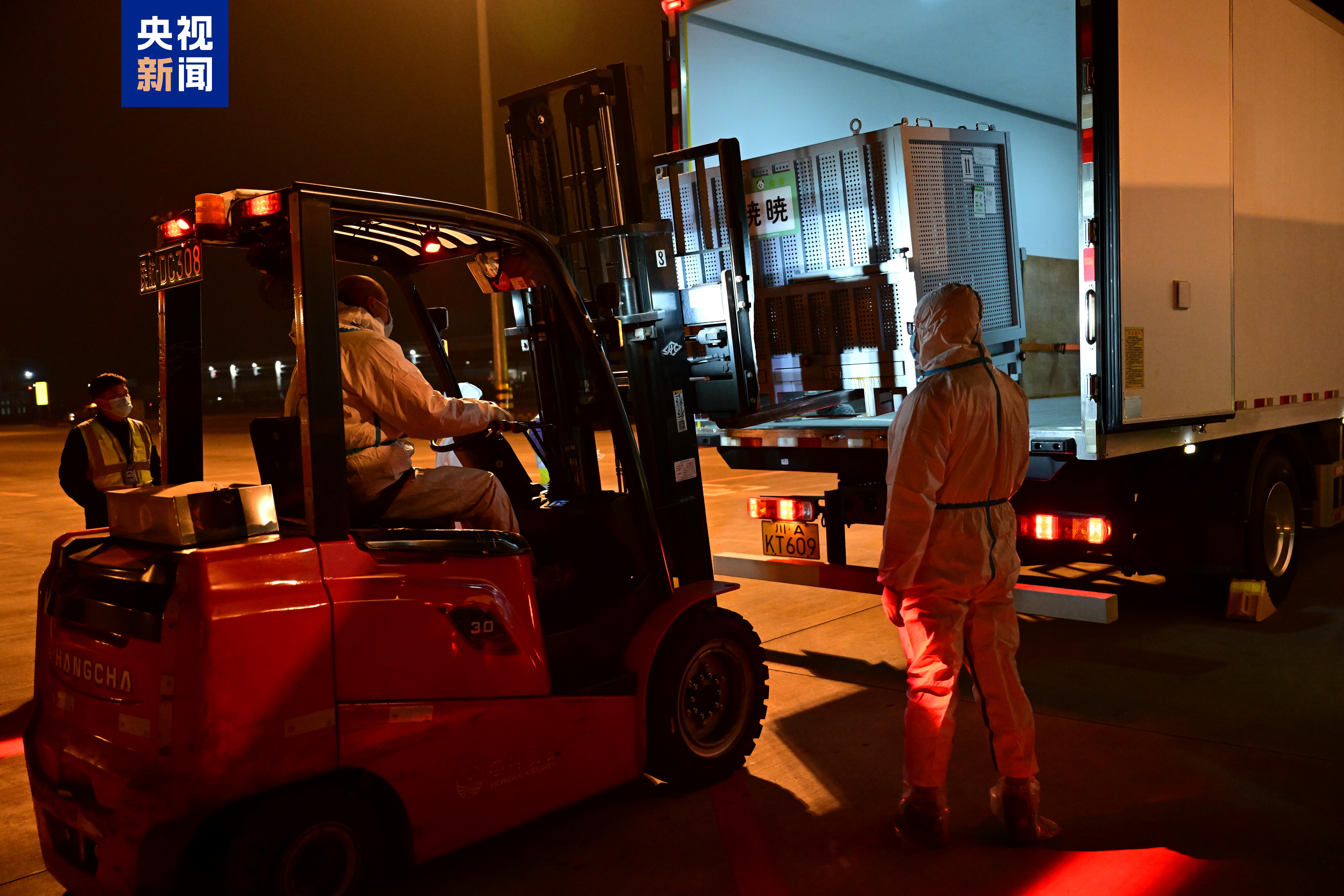 旅日大熊猫“晓晓”“蕾蕾”抵达成都