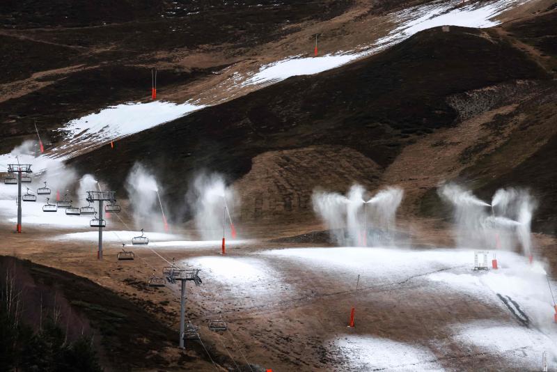 2023年1月5日,法国比利牛斯省的一处滑雪度假地在人工造雪。由于全球气候变暖,寒潮和霜冻频率预期减少,低海拔地区滑雪场将愈发依赖昂贵的人造雪。    新华社/法新