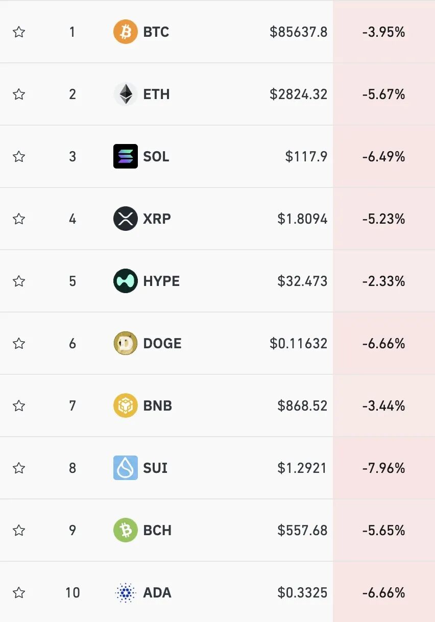 加密货币大跌,比特币价格跌超3.95%,跌破86000美元,以太坊跌5.67 %,狗狗币跌6.66%,近24小时爆仓人数超18万人。