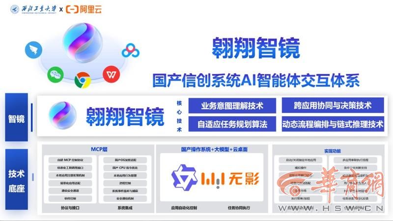 大会现场,学校发布了两款最新人工智能产学研融合科技成果。其中,“翱翔智镜”AI智能体平台,解决了国产信创环境中效率低、协同难、安全弱等核心痛点,支持自然语言指令驱动AI智能体完成跨应用任务,推动了国产信创系统从“可用”到“好用”的跨越式发展。
