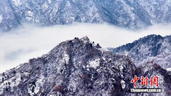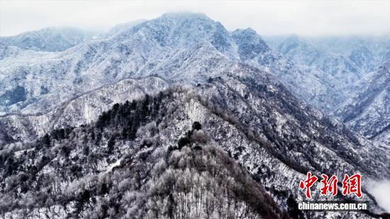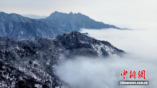 近日,陕西西安。秦岭北麓翠华山迎来绝美冬日盛景,雾凇凝霜缀满琼枝,云海翻涌漫过山峦,皑皑白雪尽覆秦岭群峰,勾勒出一幅灵动的冬日山水画卷,尽显秦岭冬日的雄浑与婉约。图为秦岭翠华山上的雾凇景观。 张霄龙 摄