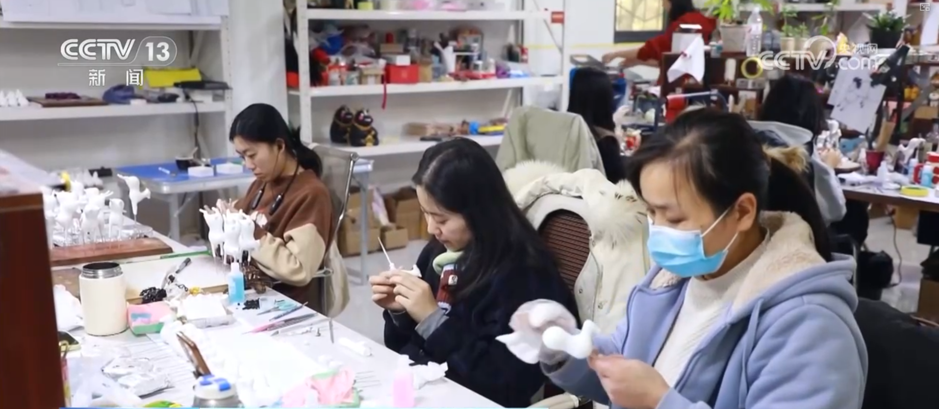 加上毛发,这一款精致的“潦草小马”就终于完工了。在记者身旁是“马彪彪”团队的工作室。春节临近,三十多位工作人员正在全力以赴地赶制订单中。